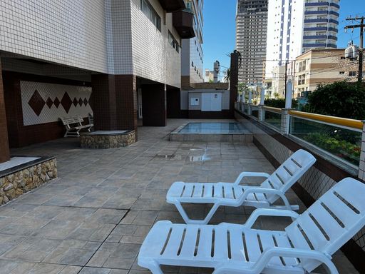 LINDO APARTAMENTO COM 1 DORMITORIO, SALA, COZINHA, BANHEIRO, AREA DE SERVIÇO, SACADA E 01 VAGA DE GARAGEM. PREDIO COM LAZER E VISTA PARA O MAR, CENTRO DO CAIÇARA.